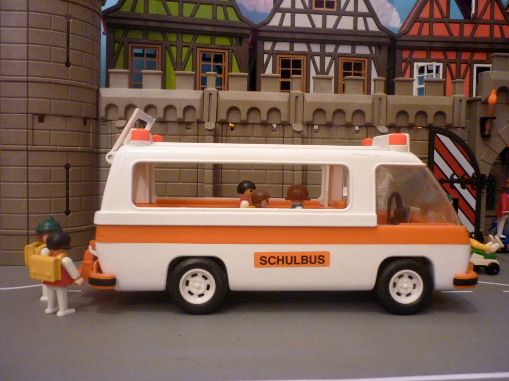 Das Ziel ist der Schulbus, der schon an der Station auf seine Fahrgäste wartet.