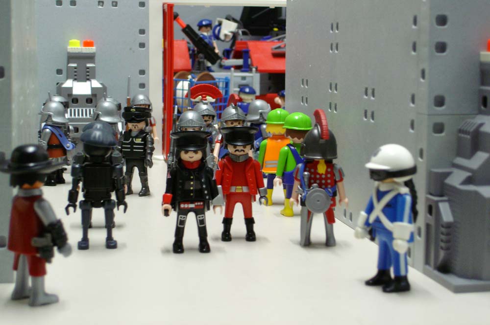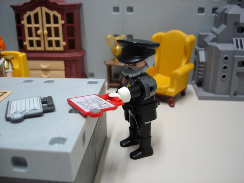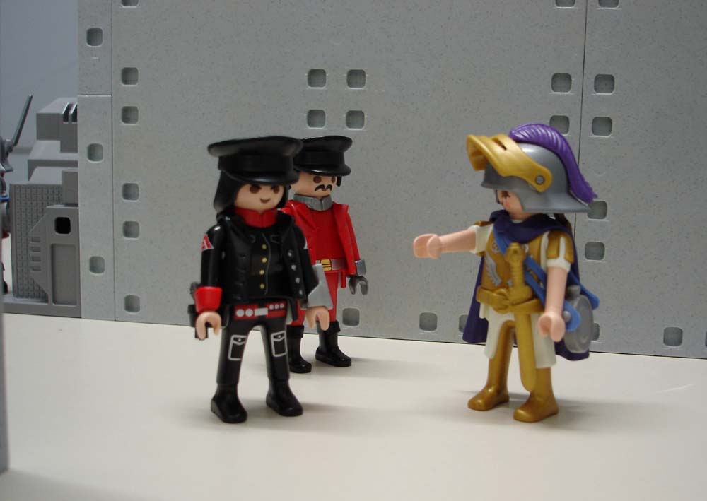 Der mürrische Offizier am Eingang versperrt ihnen den Weg: „HALT! Wer sind sie? Was wollen Sie?“.