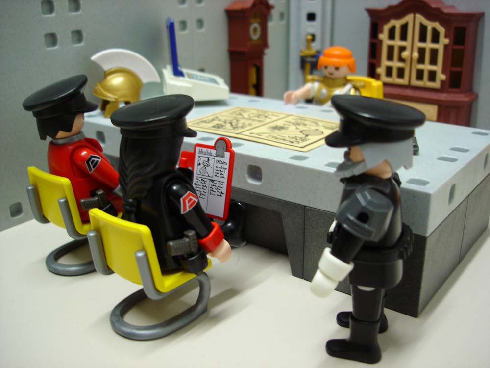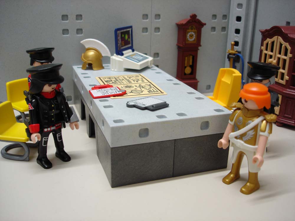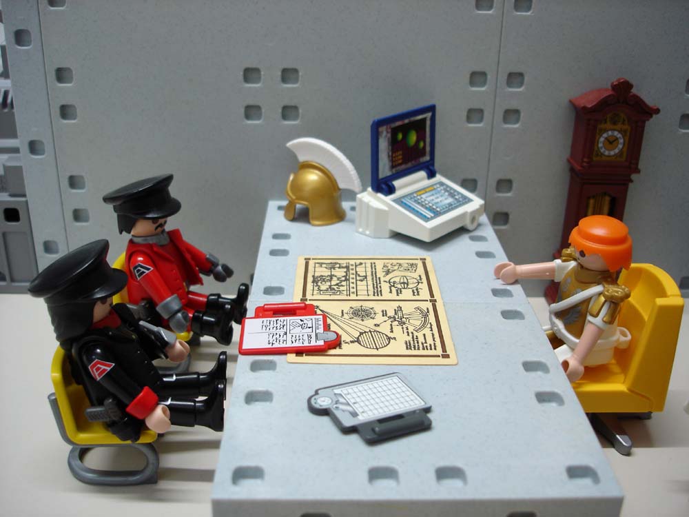 Ryback und Delroy salutieren zackig vor ihrem Oberbefehlshaber – was dieser ebenso zackig erwidert: „Guten Morgen Zenturio Ryback. Dekurio Delroy. Bitte nehmen Sie Platz.“ Von Anthony Steel kommt zur Begrüßung nur ein knappes Nicken.