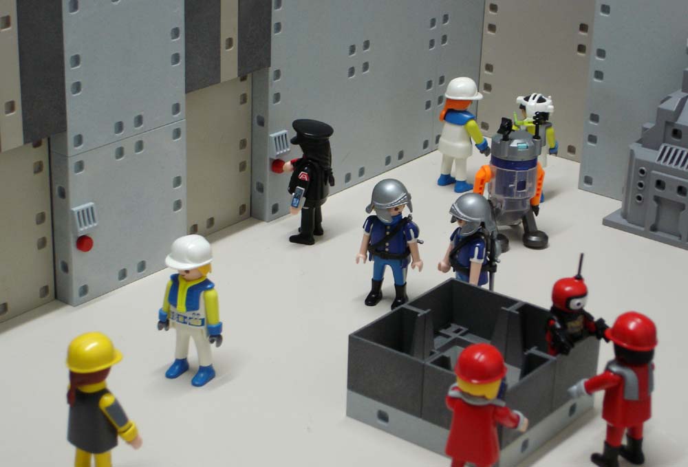 Einige Abzweigungen und Gänge später erreichen sie ein großes bewachtes Panzerschott.