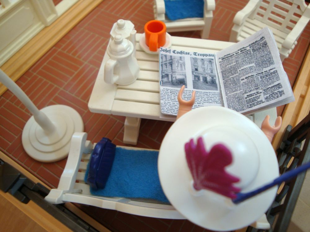 "Ach Sohn jetzt stell dich nicht so an ich fahre ja auch schließlich nach Wien um mit einem mir bisher unbekannten Mann eine Zeitreise zu starten. Außerdem erkennst du diesen Mann nicht? Das ist doch Rudolph Karstadt der erfolgreiche Kaufhausunternehmer"