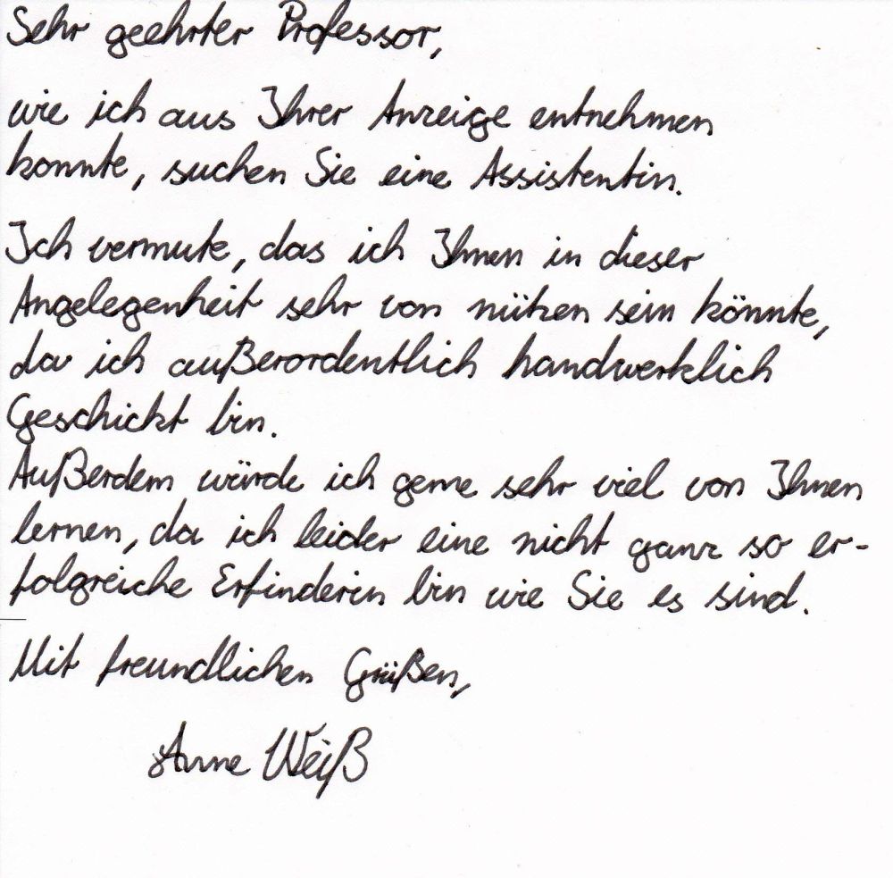 Aufgeregt öffnete ich den Brief vom Professor