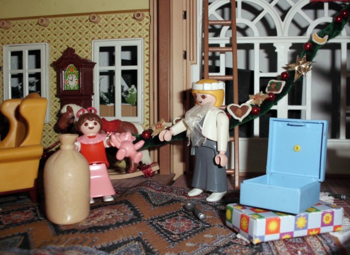 Keine Stunde später stand sie mit einem Sack voller Spielwaren vor ihrer Mutter, die mit einem glitzernden Stern auf einer Leiter stand.