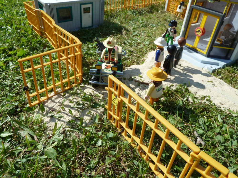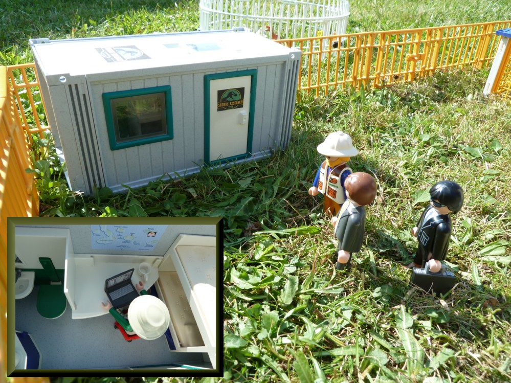 „Das Außengehege ist für die Forschung der gefährlichen fleischfressenden Saurier, zum Beispiel die Raptoren. Der Zaun ist wie auch der Stations-Zaun elektrisch geladen.“ erklärt Dr. Kringe.