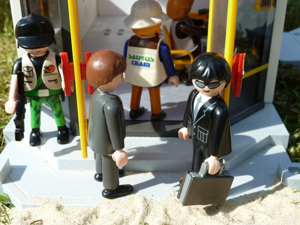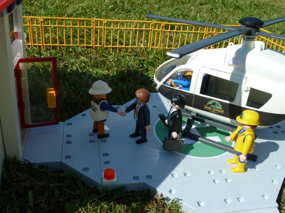Der Projektleiter, Dr. Johann Kringe, begrüßt die Gäste. „Herzlich Willkommen auf Pangae, der Saurier-Forschungs Insel, Herr Minister.“ Der Minister stellt seinen Begleiter vor, „Mich begleitet Spezial Agent Fairbanks,