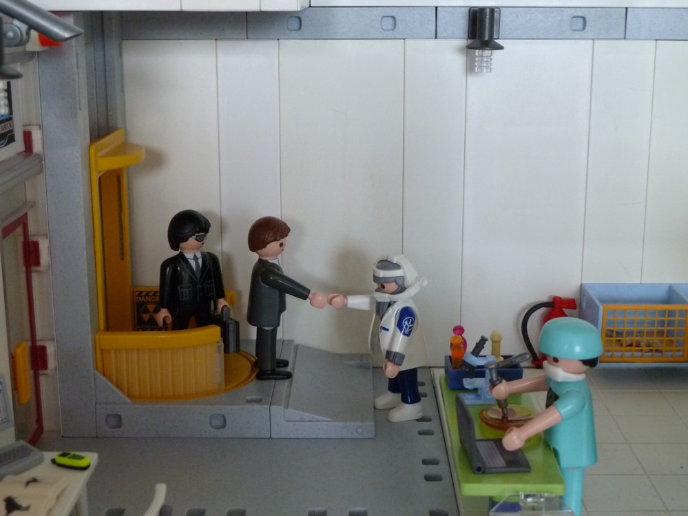Professor Dr. Ferdinand Spielberg begrüßt seine Gäste. Sie kennen sich bereits, da der Professor schon lange mit der Playmo-Regierung zusammen Arbeitet.