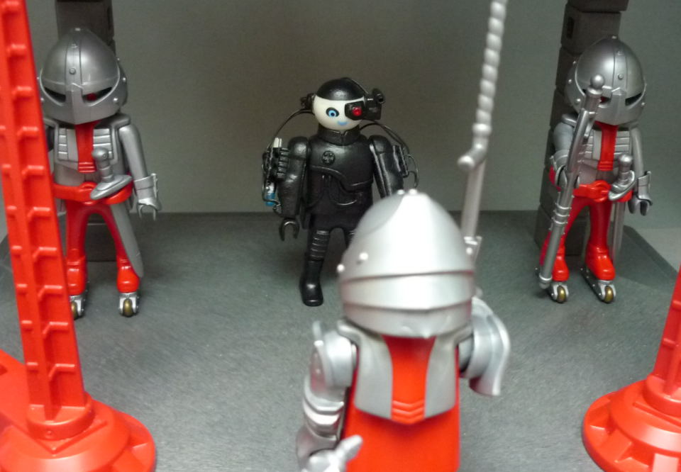 Lu musterte die Wache und dachte sich: "Hm, ein reiner Roboter. Ob es hier überhaupt schon Cyborgs gibt?"