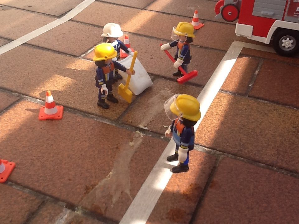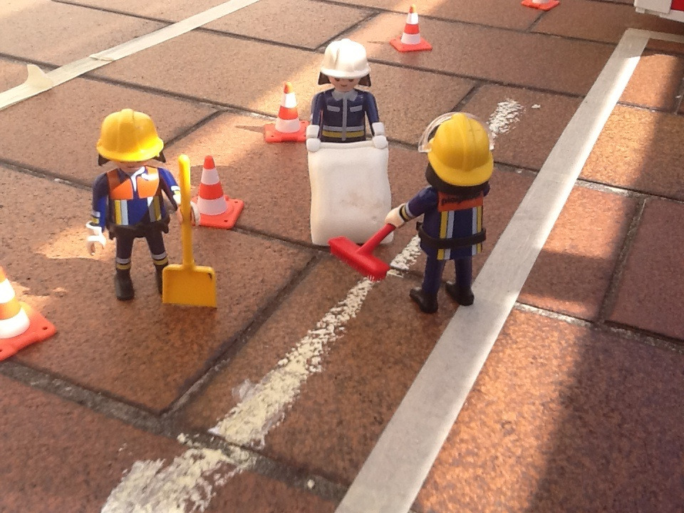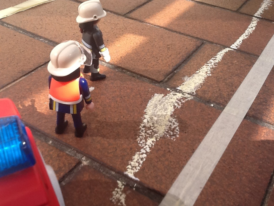 Ich finde die Idee mit der Kreide als Ölspur ganz witzig.