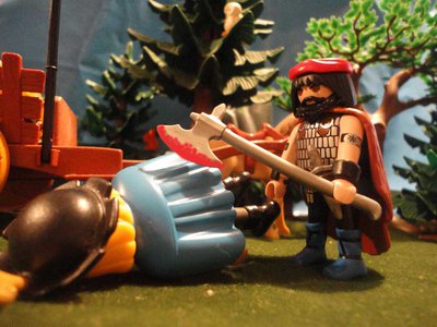 Seine blitzende stählerne Axt wich selten von seiner Seite und unterstrich