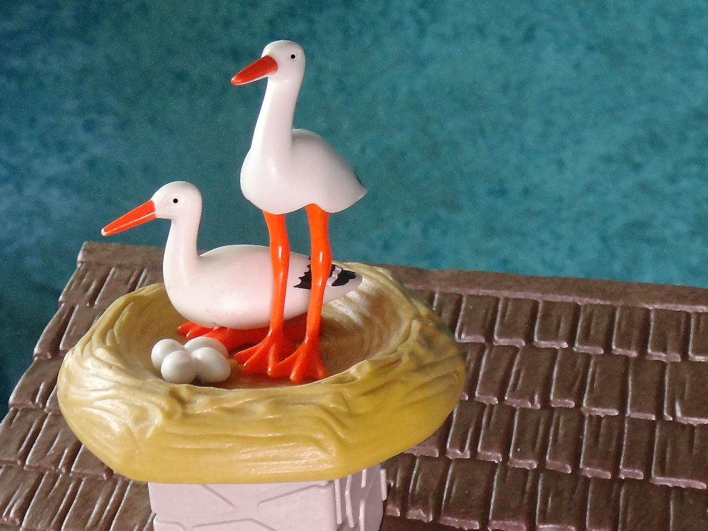Die Störche haben ihr Nest wieder bezogen und schon Eier gelegt.