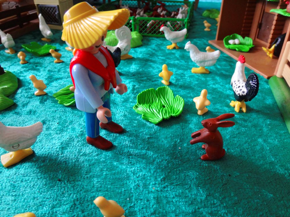 Sie halten ein paar wenige Ziegen, viele Hühner und vor allem Hoppelhäschen.