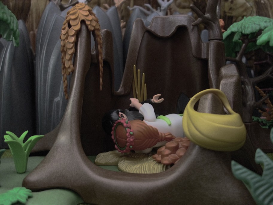 Der Tag verging schnell, denn der Weg war mühsam und so war die Dunkelheit ihr eine willkommene Freundin. Sie hatte eine kleine Höhle gefunden, wo sie sich niederlegen und ausruhen wollte. Die Höhle schien verlassen. Das Lager darin war seit Jahren unbenutzt. Doch das Gras und die Blätter waren trocken und sahen bequem aus.