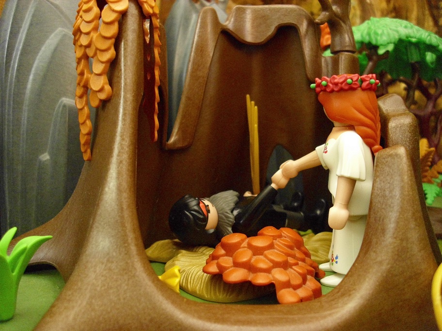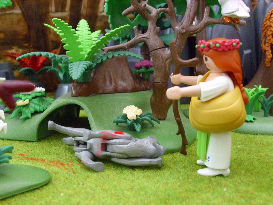 Das Mädchen kniete sich neben ihm nieder, ohne zu wissen, wer es war, dem sie half. Es war noch früh am Morgen und sie war noch nicht sehr weit von der hohlen Eiche entfernt, in der sie die Nacht verbracht hatte. Dorthin würde sie ihn bringen.