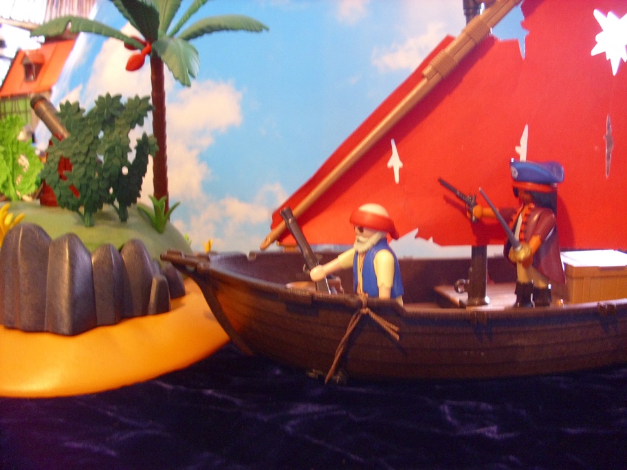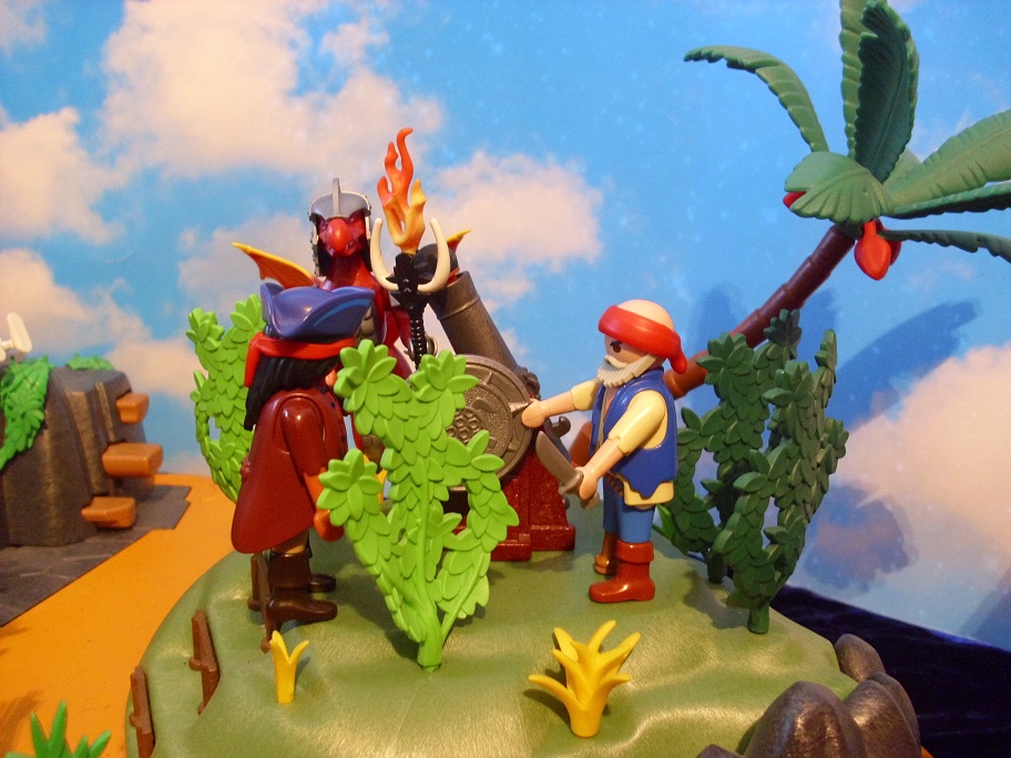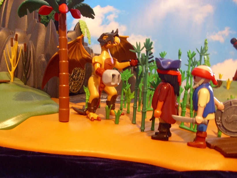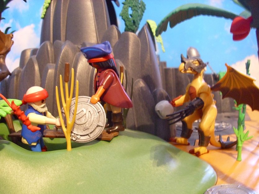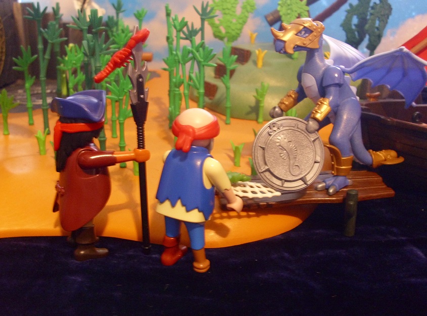 „Gut, ihr dürft an Land. Und hier habt ihr die erste Scheibe zum Eingang der Schatzhöhle.“
