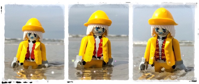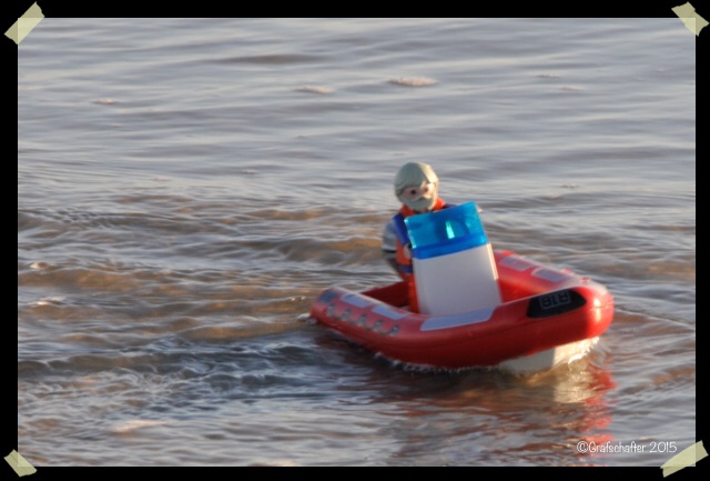 mit Motor und den 3 Figuren hatte der kleine Kutter schon guten Tiefgang. Da dürften keine Wellen mehr kommen ... Oder nur kleine.