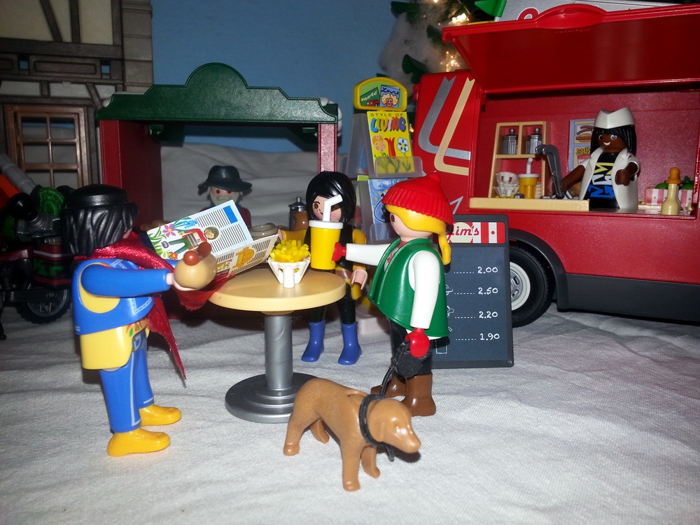 Ich gehe also noch einmal zum Würstchenwagen. Zum Glück "Hallo Jim," grüße ich, "ich bin Paula und werde ab morgen beim Playmohausener Boten arbeiten. Allerdings brauche ich unbedingt noch ein Zimmer hier im Ort. Die Dame eben meinte, du wüsstest alles was hier vor sich geht. Weißt du, wer hier Zimmer vermietet?"