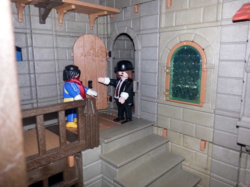 Schloss Sonnenstein steht außerhalb von Playmohausen auf einem bewaldeten Hügel. Naja, Schloss, es handelt sich eher um eine alte Burg, ein riesiges, etwas finsteres Gemäuer. Wer da wohnt, ist sicher über jeden Untermieter froh, die Unterhalt- und Heizkosten müssen immens sein.