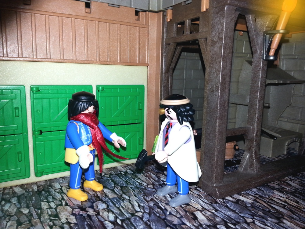 ... damit öffnet er eine Stalltür, "könntest du eine Nacht hier im Heu verbringen. Das merkt keiner und durch das Schmiedefeuer nebenan ist es ganz angenehm warm hier. Mein Gehilfe übernachtet hier auch des Öfteren."