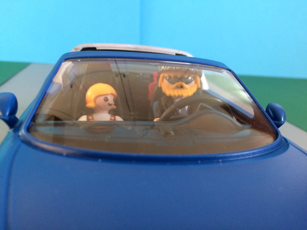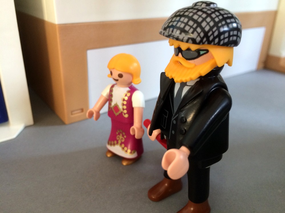 Wir haben die Sitzplätze 42 und 43.“ erzählt Franky. „So sitzen wir auf der einen Seite neben Playmobueb, der wunderbare Western-Architekt von Sweetwater...“ „...und auf der anderen Seite neben Playmofee!" berichtet Franky.
