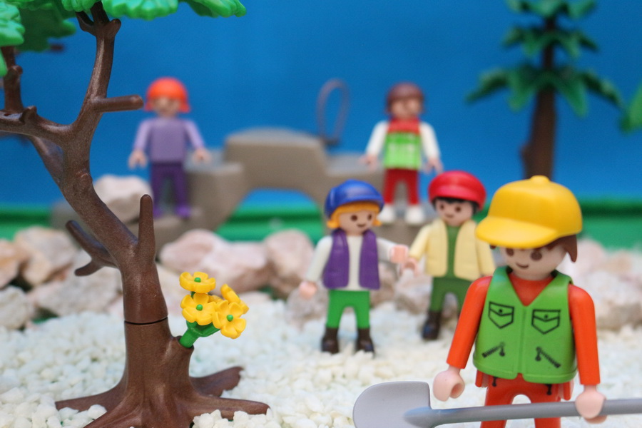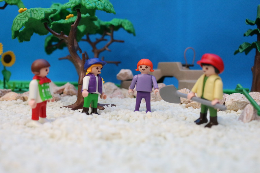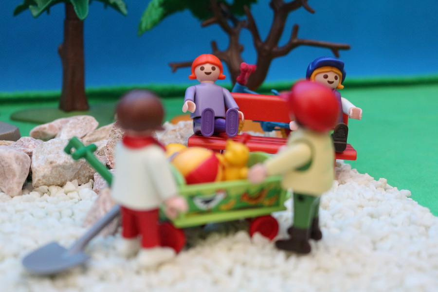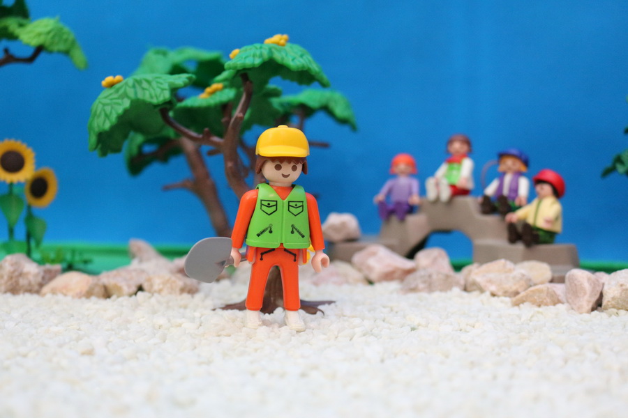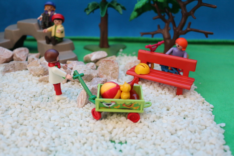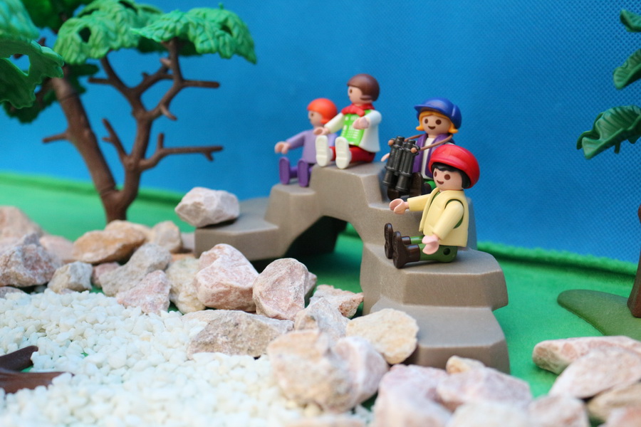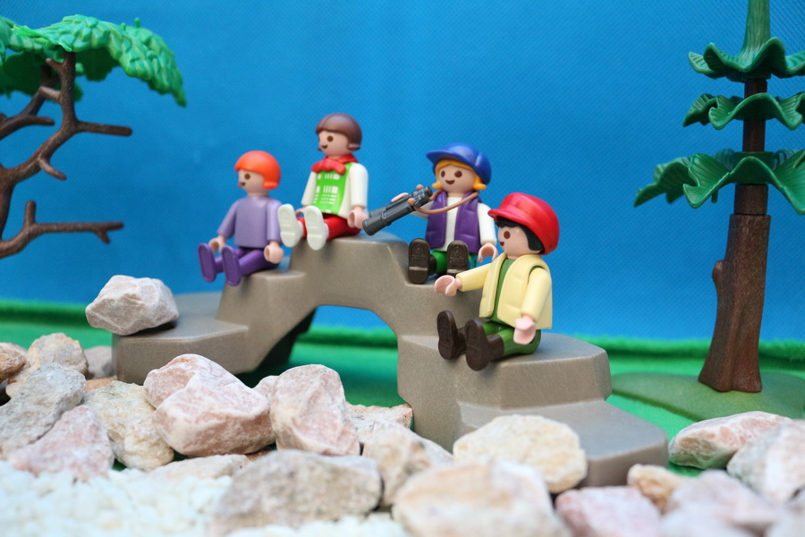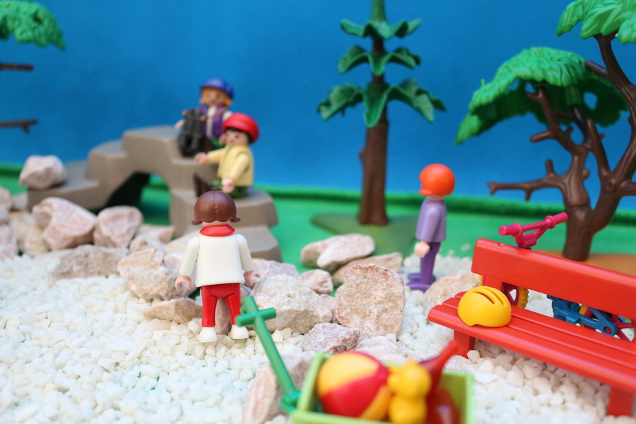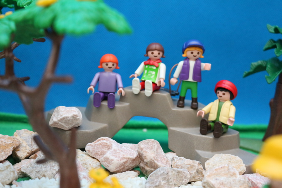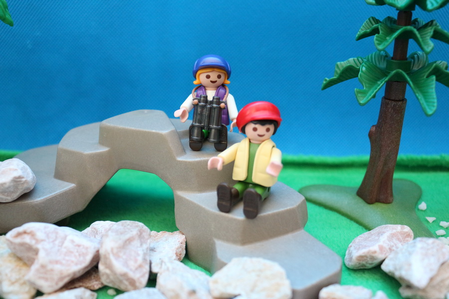 Ach der Lasse ist gleich zu Sarah hinten auf den Stein geklettert!