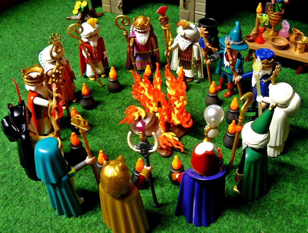 erinnert mich irgendwie an die heiligen drei Könige hat aber auch was vom Treffen der Druiden in Asterix ...