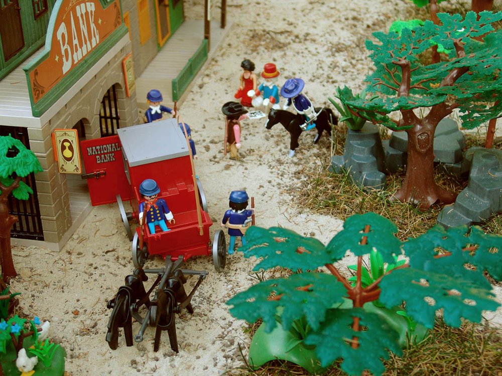 Und das mit dem Gold funktioniert so: Die Goldgräber brigen Ihre Nuggets zu Bank. Dort werden sie gegen Bargeld getauscht. Die Nuggets werden zu Barren geschmolzen und im Tresor (in den auch Frederics Ersparnisse lagern) verwahrt. Die National Bank holt dann die Barren und bringt dafür frisches Bargeld.