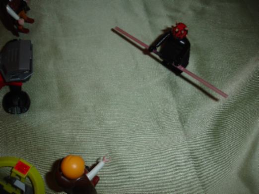 - Darth Maul hebt den Flieger hoch und wirft ihn auf Luke.
