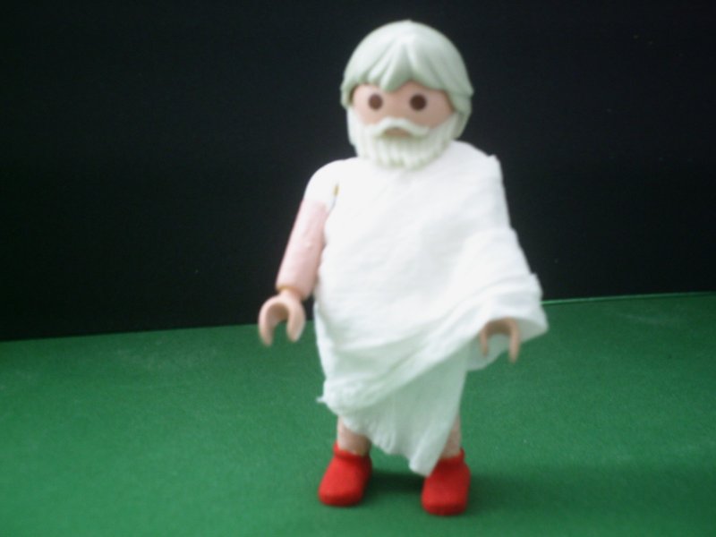 Auf Wunsch von blueflower noch ein Foto des Senators. Die "Toga" ist Crepp-Papier, das in eine Bahn geschnitten und einigermassen passend um den Körper "gewickelt" wurde. Zur Befestigung diente u.a. doppelseitiges Klebeband.....