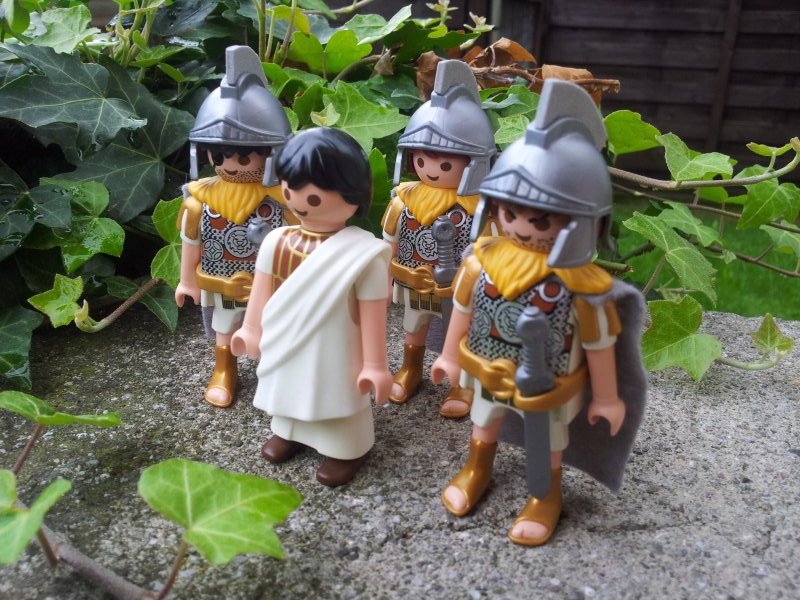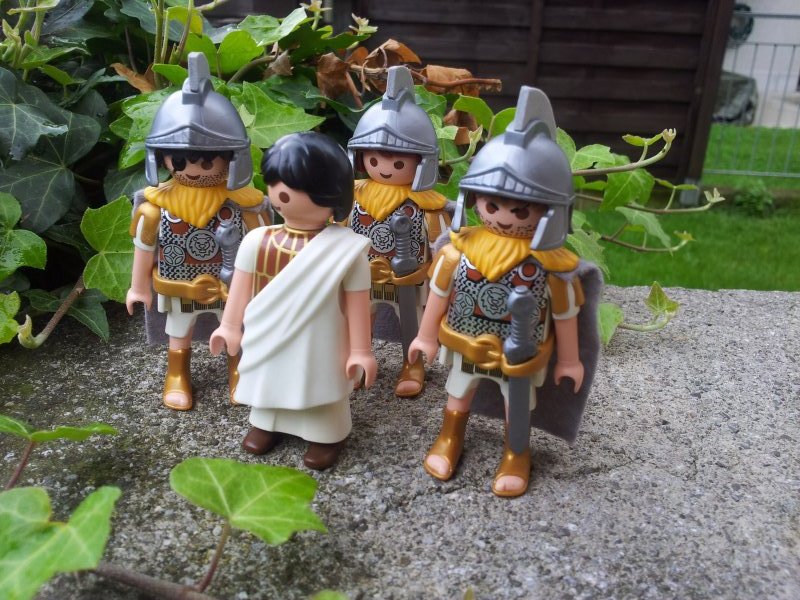 Kürzlich bekam ich ein paar Römerteile, die für jemanden "überflüssig" waren (es wurden offenbar nur die Arme gebraucht.... :wink ). Nun.... mit den Resten, und mit Hilfe meines eigenen Fundus, hab ich daraus wieder eine kleine Gruppe gebastelt.