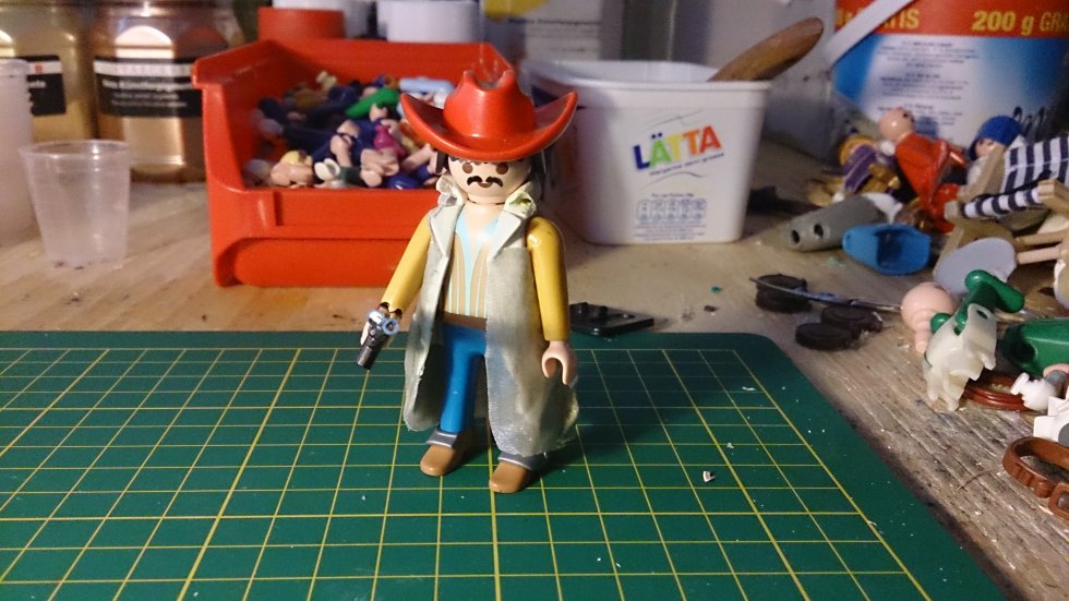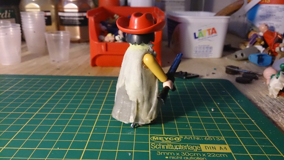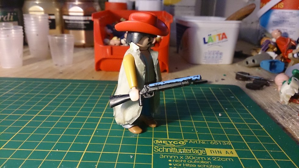 ein Südimützchen gleich in Grau gegossen und ein neuer Westernmantel,wollte einfach mal einen haben der so schön lang ist ,ne Art wie die Pinkerton Detektive Sie hatten und auch ein Paar Westernbösewichte