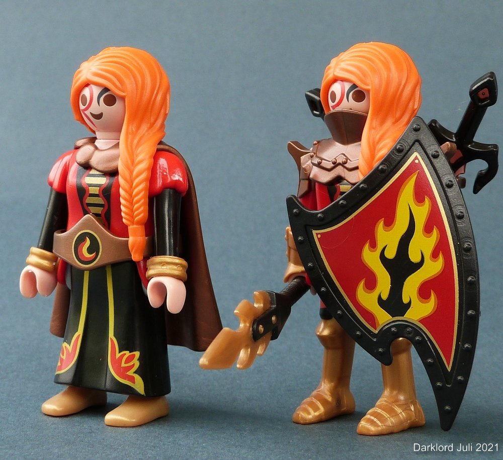 Grundlage von Pyralia sollte schon die von Geobra geschaffene Pyralia sein. Man soll erkennen, dass es sich um diesen Novelmore-Charakter handelt. Da habe ich echt lang rumexperimentiert. Deshalb unter anderem auch die Kombination von Bronze und Gold. Die von Dir vorgeschlagenen Teile passen meines Wissens von der Bauform (Figures 9) und von der Farbe (Figures 11) nicht so wirklich. Ich werde aber mit der Figures 11 Hexe nochmals rumspielen, weil ich mittlerweile festgestellt habe, dass die Stiefelbeine der ganz neuen Novelmore-Figur (Grundlage der ersten Kriegerin) in die geschlitzen Röcke passen. Wahrscheinlich wird der geschlitzte Rock für die wilde Pyralia dann aber zu fein.