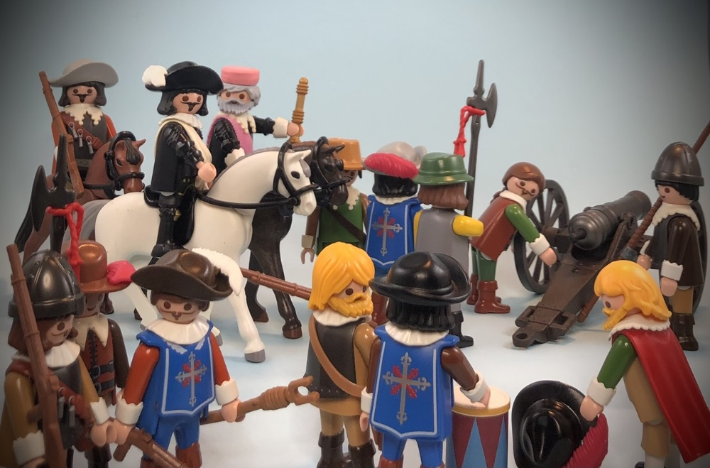 Interessant in diesem Zusammenhang finde ich die Tatsache, das Geobra den Überwurf der Musketiere fast genauso gestaltet hat, wie es gemalt wurde