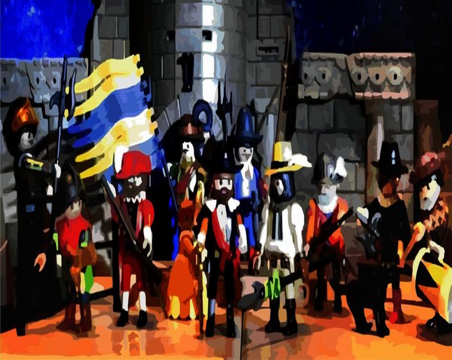 Als Dio könnte ich die Figuren so aufstellen, dass die Szene auch qua Höhe und Breite dem Gemälde ähnelt. Zum fotografieren (und gleichzeitig die Figuren alle gut anschauen zu können) wird es dan aber zu umständig...