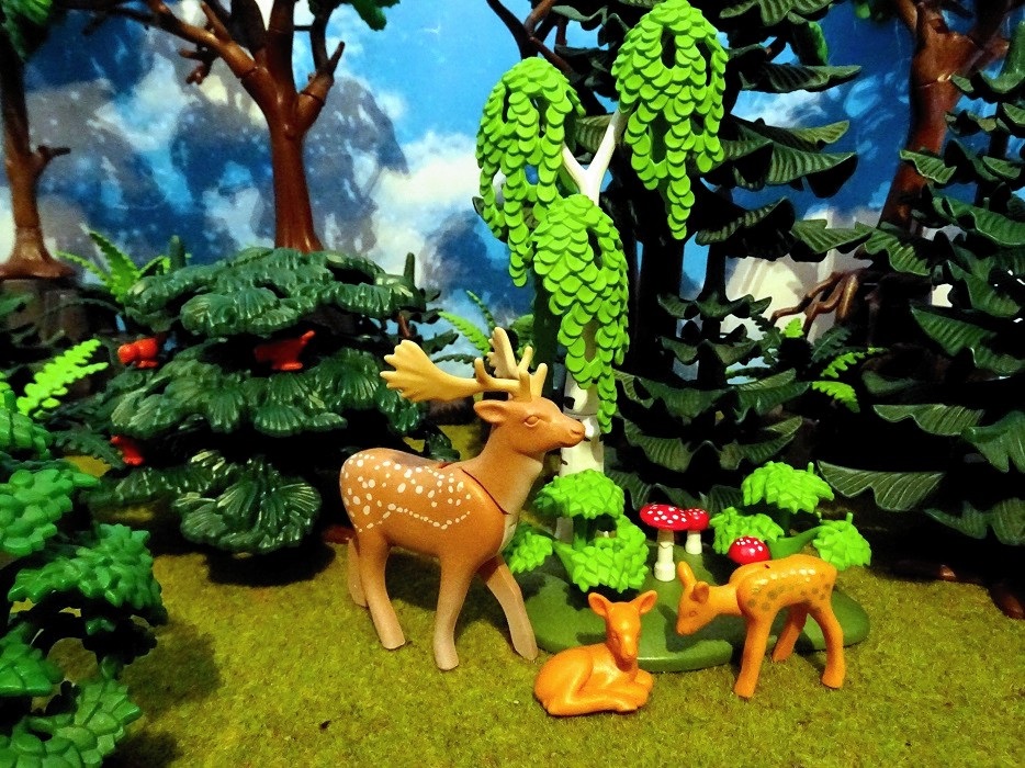 Zum einen der Damhirsch. Der ist wunderschön. Nur so allein. Die kleinen Goldpunkt-Kitze passen aber recht gut dazu. Dammwild-Kitze sind auch irgendwie goldbraun.