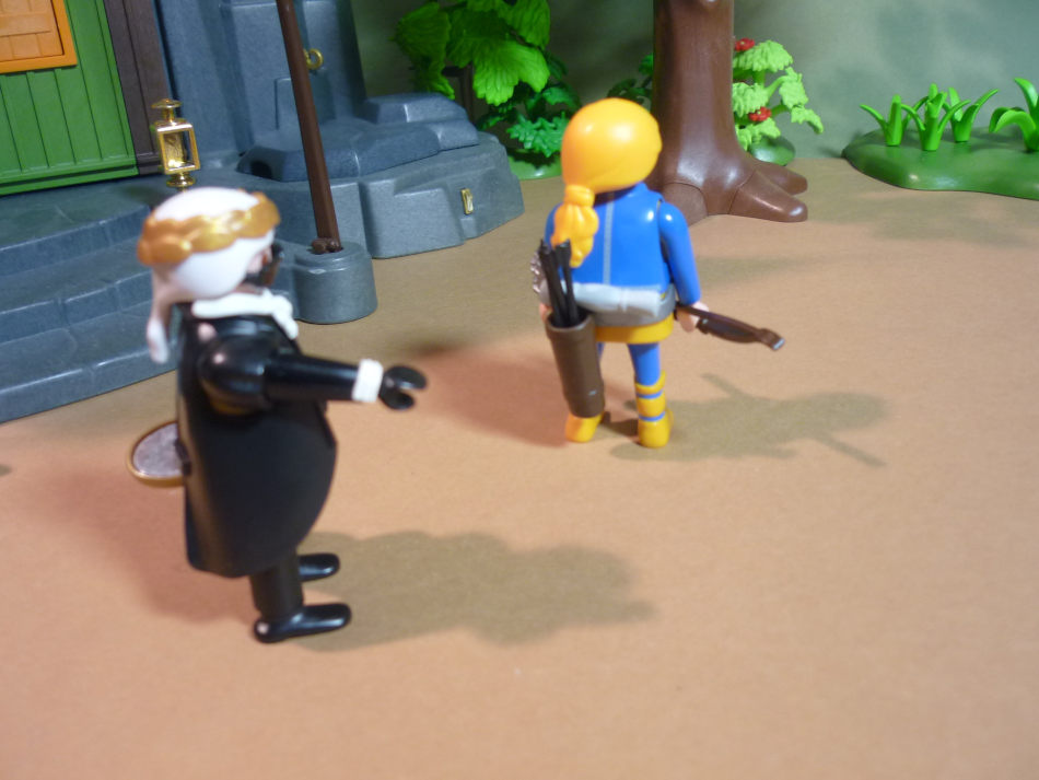 "Geschätzte Leser, hier sehen Sie die Wächteruniformen. Zu erkennen an dem Dunkelgrün des Oberkörpers, welches natürlich weder eine profanes Alt-Polizei-Grün, noch das übliche Lindgrün ist, sonderndas ganz dunkle Grün, welches wir auch beim Köcher vorfinden. Drehen, drehen, drehen und den Köcher präsentieren!" *fingerschnipp*
