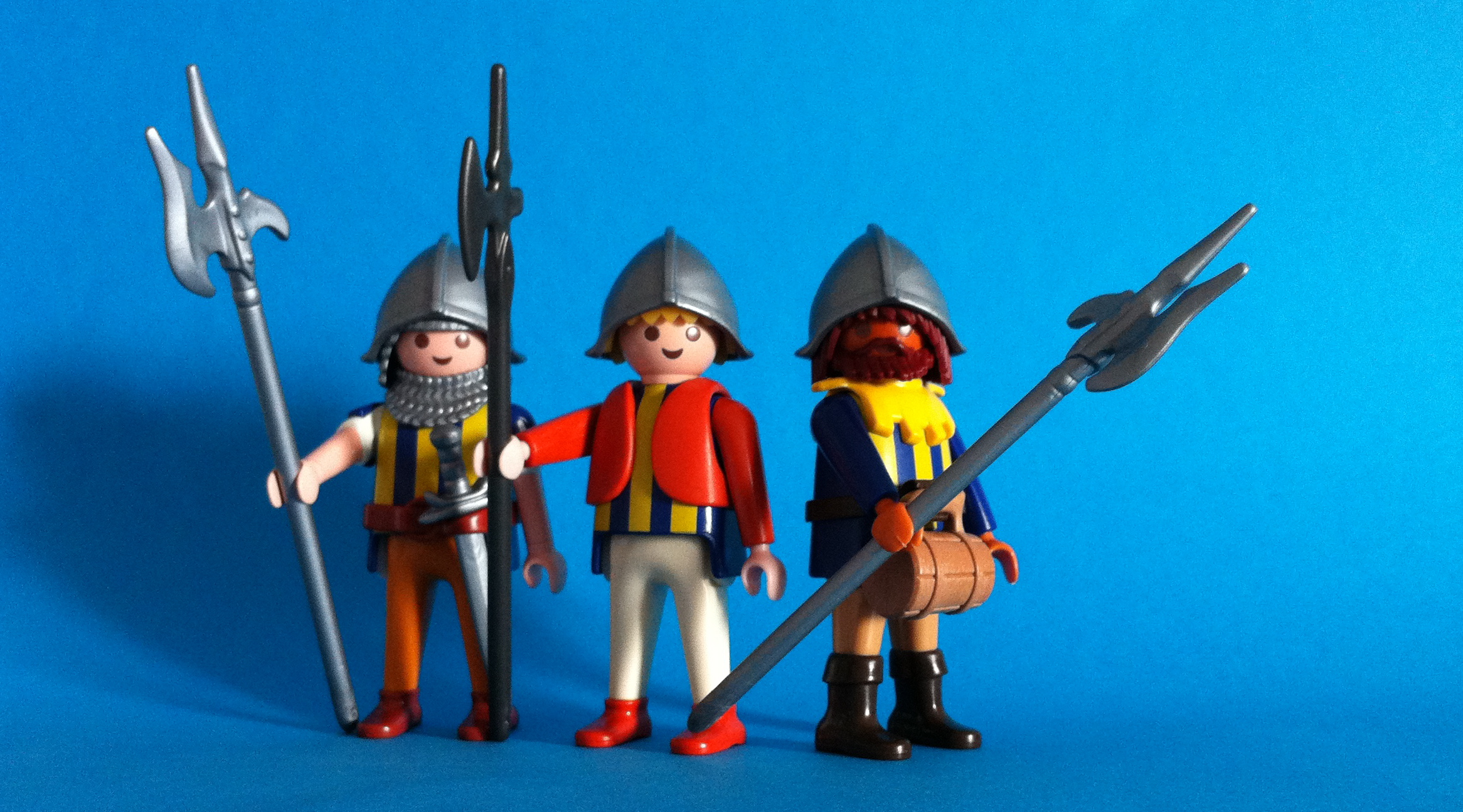 Hier die beiden Stadtwachen-Azubis mit ihrem Ausbilder Fernando Dagallo, ehemaliger Seeman und alter Haudegen, der immer einen Humpen dabei hat!