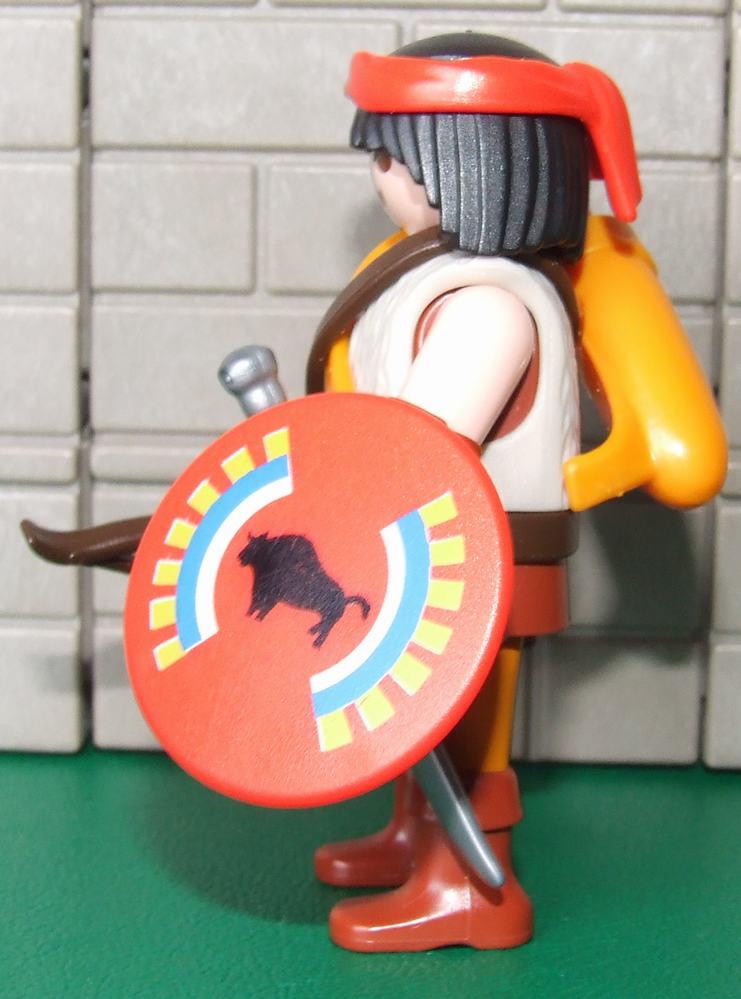 Die "weibliche Rüstung" ist aus einem Römer-Oberkörper herausgedremelt und mit Hilfe des Heißluftföns an die weiblichen Konturen angepasst. Den Ausschnitt habe ich einfach so weit herausgefräst, wie es der Oberkörper zulässt. D.h. so weit, dass man noch den am Oberkörper aufgedruckten Ausschnitt sieht.