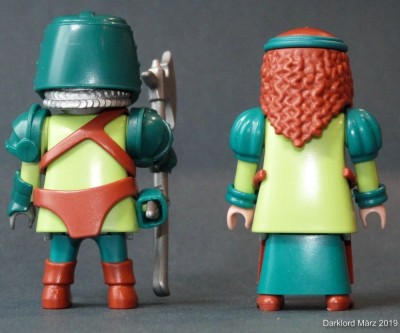 Dies war auch das Custom, für welches ich den Bart in der Farbe wie der Bart der Dürer-Figur gesucht habe. Es scheint aber tatsächlich nur den Dürer-Bart in dem Farbton zu geben. Also bin ich über meinen Schatten gesprungen und habe der Figur keinen Backen-Bart verpasst. Es erschien mir einfach unverhältnismäßig, dafür zwei Dürer zu zerlegen - zumal man den Bart bei der Kriegerinnen-Version nicht sehen würde. Also handelt es sich hier um eine sehr junge Kriegerin, der einfach noch kein Backenbart wachsen will.