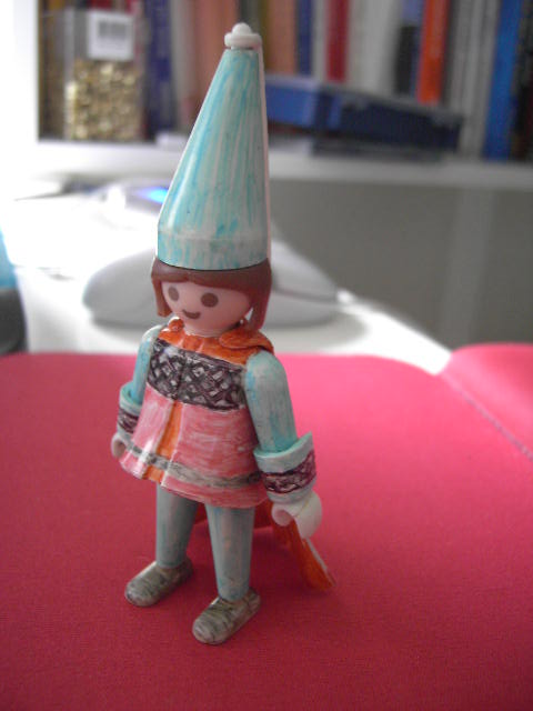 eine sehr schön bemaltes Burgfäulein das ich auf dem Flohmarkt aus eine Kruschtelkiste für 50 cent gerettet habe :brille