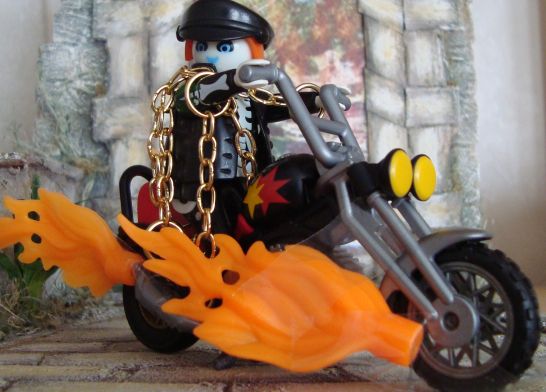 ... Figuren den Kopf abschlagen und dann neue Männchen zusammensetzen. Hier ist ein Bild unseres ersten Versuchs: der Ghostrider, eine Comicfigur.