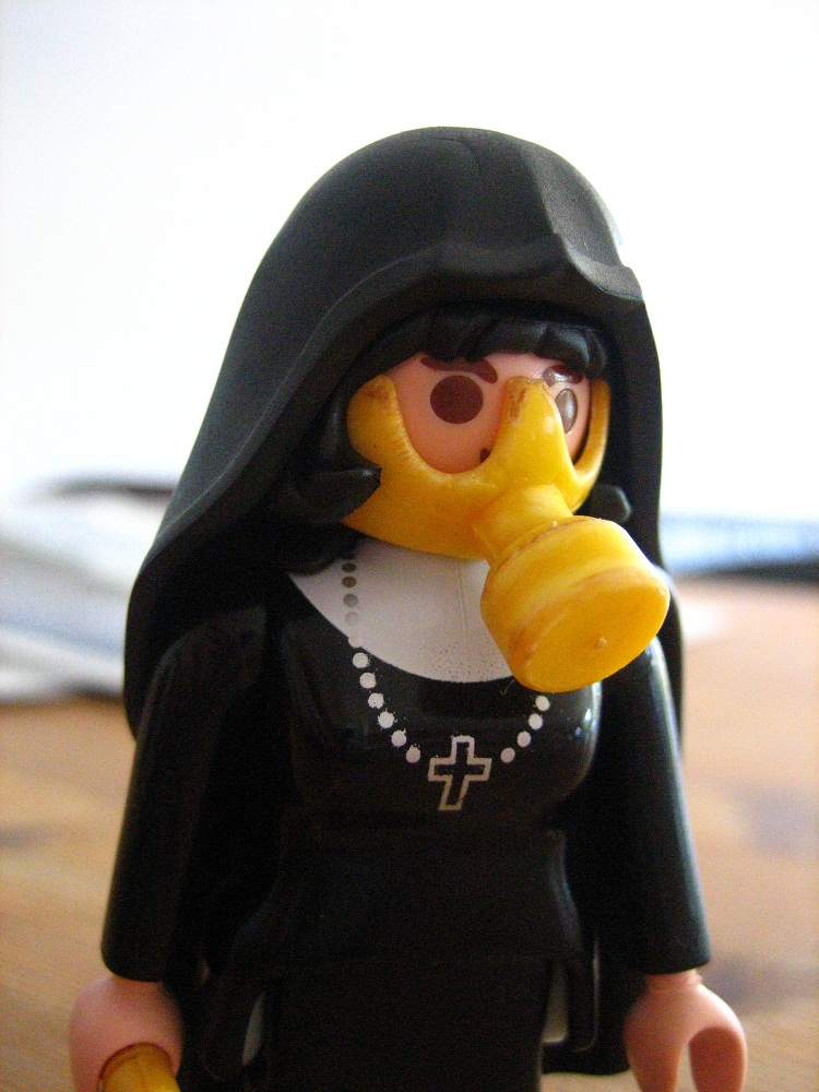 Für meine Burg habe ich mir aus der Grundfigur "Nonne" einen Pestarzt/Pestärztin gebaut.