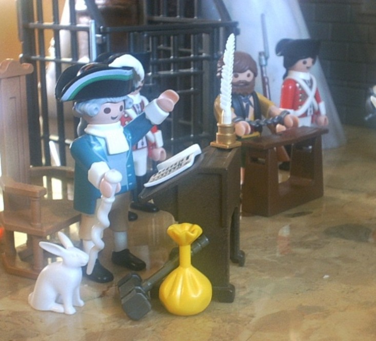 Die Story mit dem Kaninchen ist mir auch völlig unbekannt, aber ich sehe hier in erster Linie toll gestaltete Figuren und einen schön gemachten Gerichtssaal. Kommt toll historisch und detailgetreu rüber!