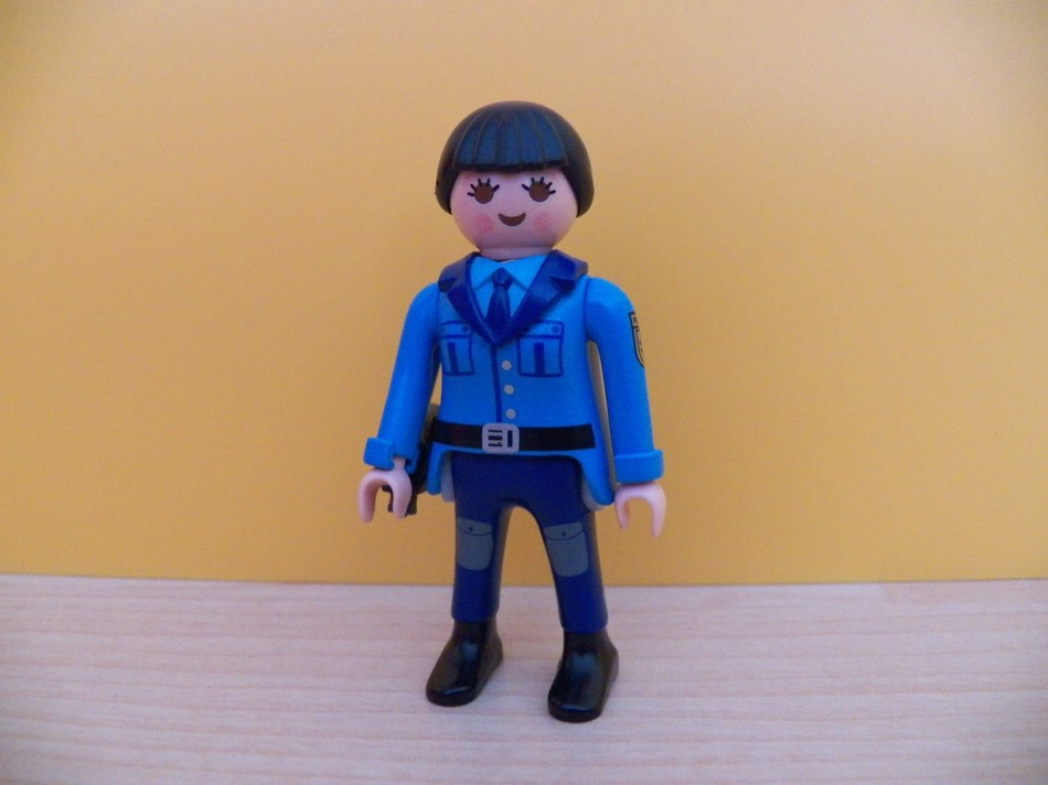 Die Polizistin in neuer Uniform sieht gut aus.