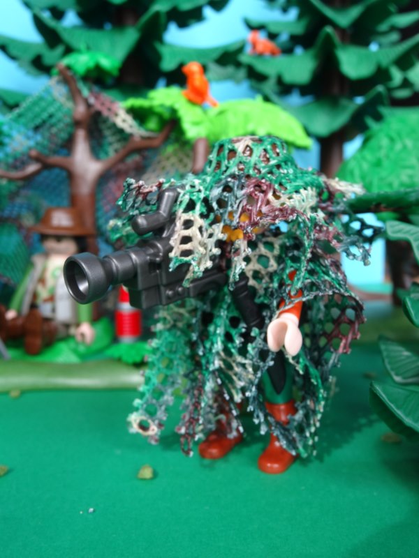Jedenfalls hatte ich heute nachmittag irgendwie die Idee einen Ghillie-Anzug für einen Jäger zu machen.