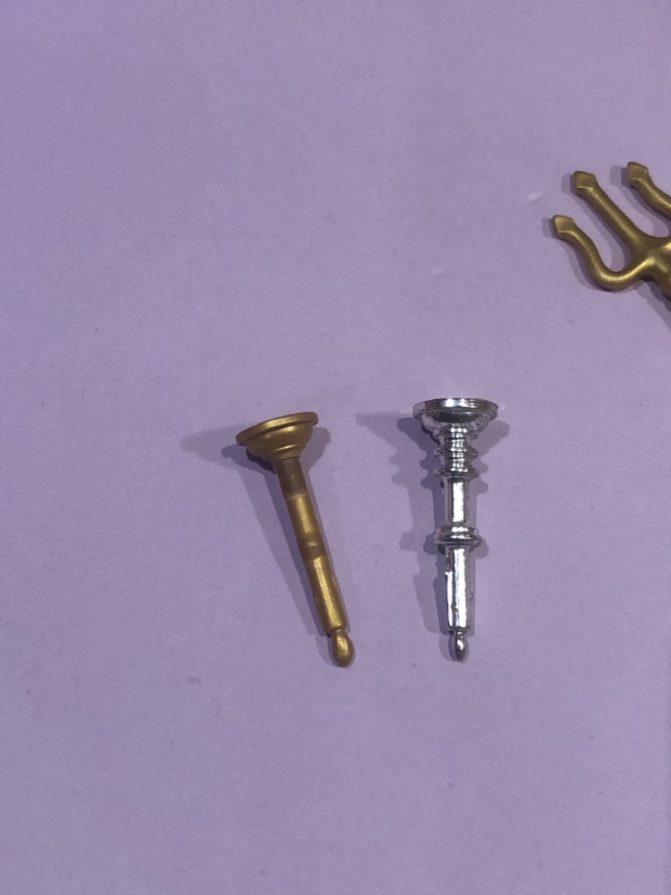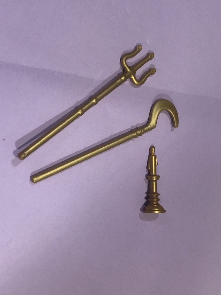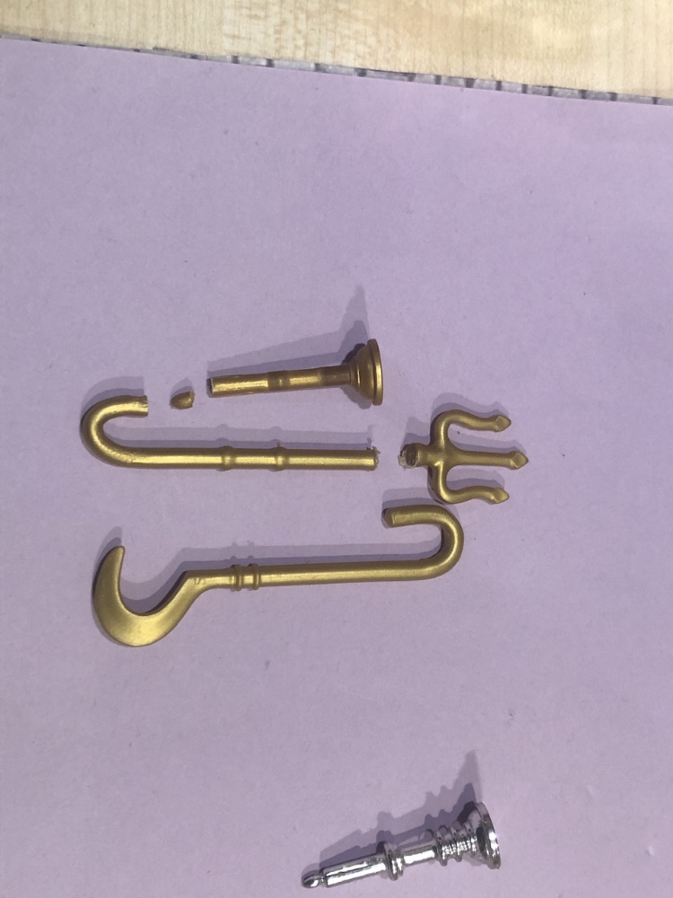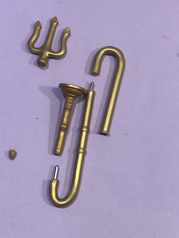 Leider sind Sichel und Dreizack vom Material her etwas weicher / flexibler. Dadurch ist es nicht ganz so einfach zu bearbeiten. Auch kleben ist schwierig. Daher sieht manches nicht ganz so perfekt aus.