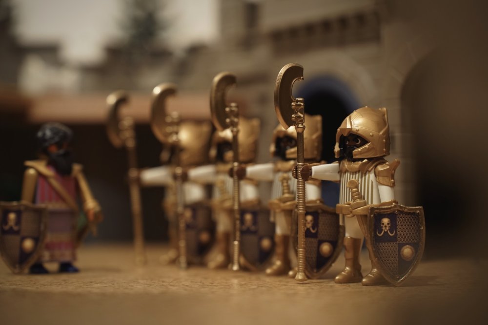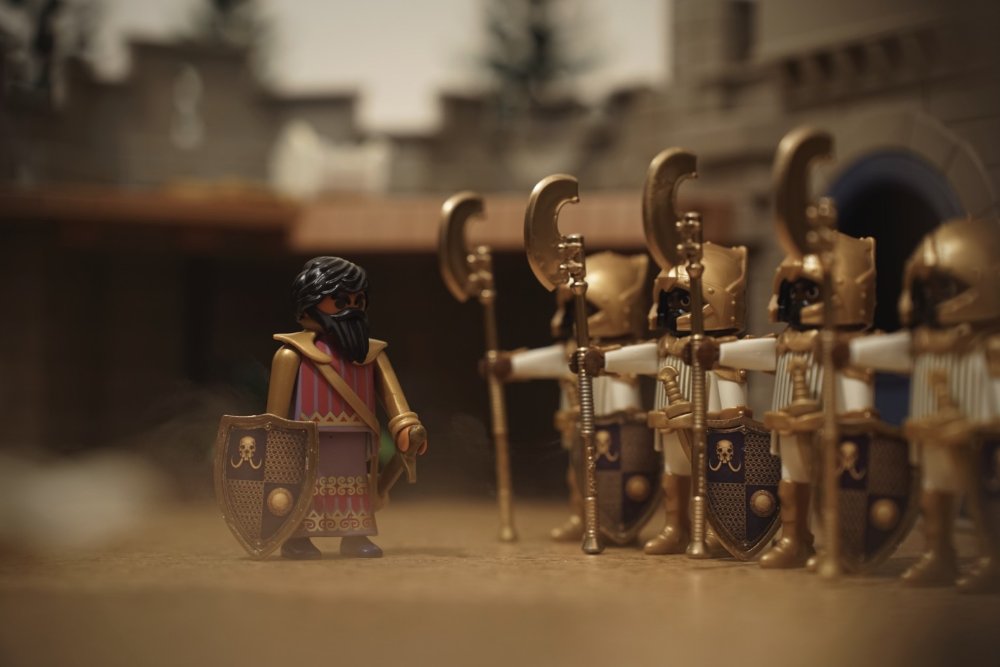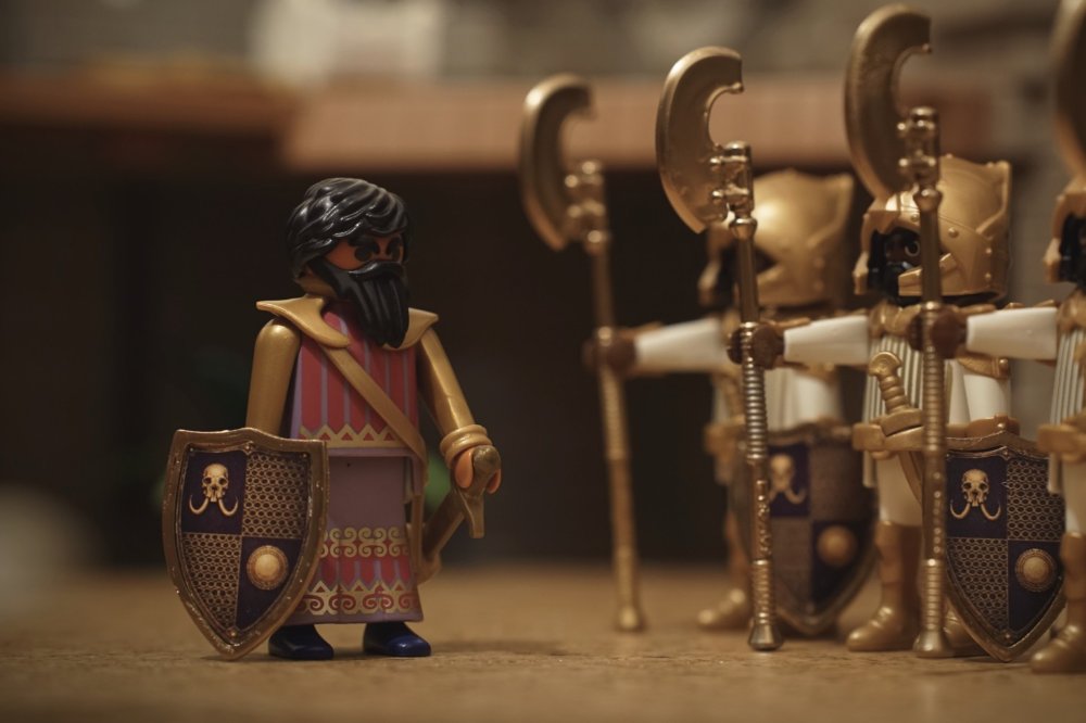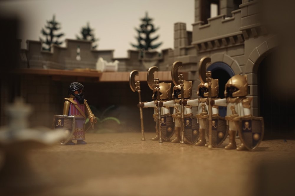 Ist das der Prinz von oben - aber jetzt mit richtigem Bart? Oder wird das eine neue Linie der Rittererzählung? Auf alle Fälle absolut tolle Figuren und Aufnahmen. Wenngleich der goldige Lendenschurz am Ende schon verboten knapp ist, bei der Kniebeuge...