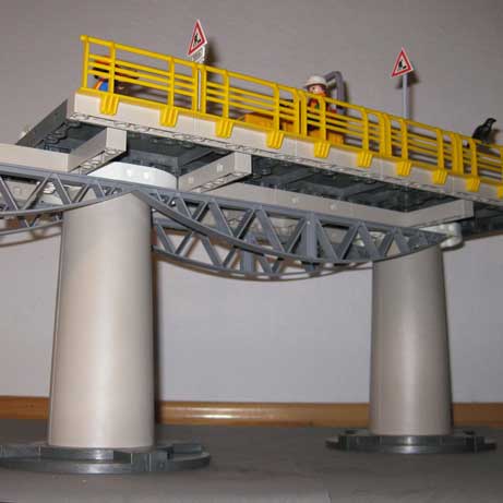 Danke für Euer Lob! Entstanden ist die Idee übrigens anhand des Katalogtitelbildes von 2000. Siehe auch 2006-Collector Seite 193. Ich dachte mir immer, das gibt es doch nicht, dass Playmobil so ein tolle Brücke abbildet, die es aber gar nicht zu kaufen gibt! Nun endlich gab es die erforderlichen Teile. Übrigens baubob: Ja, die Pfeiler sind vom Tower. ETN folgen.
