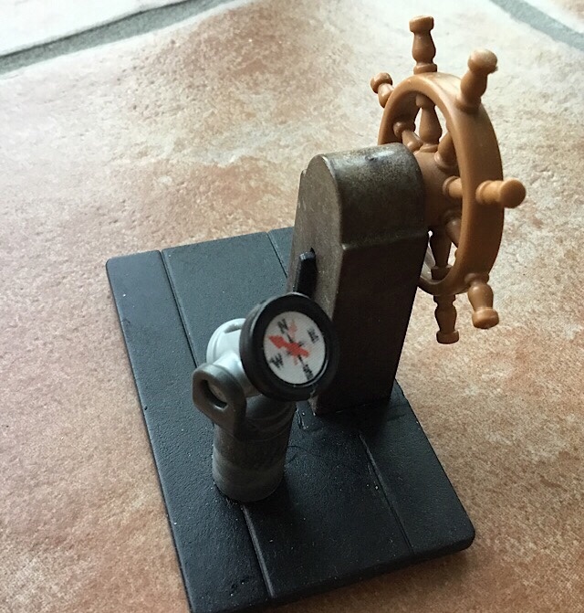 Dann noch ein bisschen farbig gestaltet und die Einheit Kompass mit Steuerrad für das nächste Schiff ist fertig.