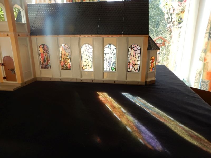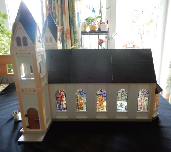 Ausgesprochen gut gefallen mir die Kirchenfenster! :zehn Allerdings wären mir zwei Uhren zu viel. Alles in allem sehr gelungen :klatsch2 :klatsch2 :klatsch2