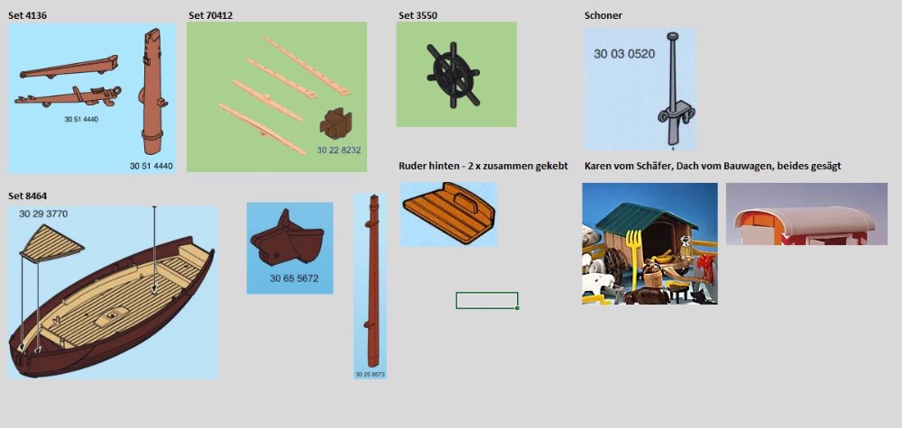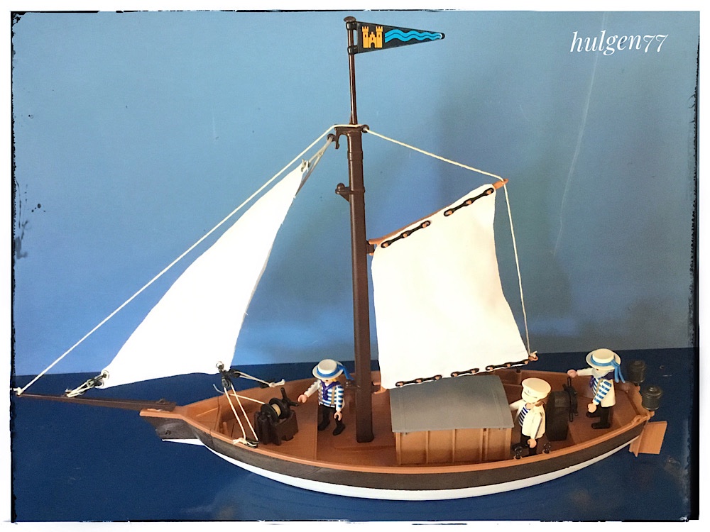 Habe dann versucht, die einzelnen Playmobil Teile zusammen zu suchen um dieses schöne Boot nachzubauen…